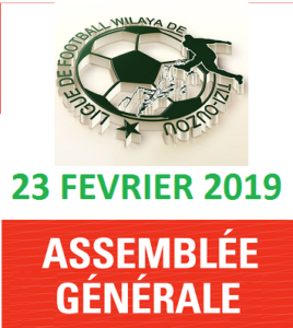 Les président de clubs des division Honneur, Pré-honneur, Jeunes catégories affiliées à la ligue de Football de la Wilaya de Tizi-Ouzou sont invités à assister à l’Assemblée Générale Ordinaire qui est programmée pour le Samedi 14 Mars 2020 à 10H00 au niveau de la salle des fêtes "Palais des noces" Lots Hasnaoua N°51 en face cité les Genêts – Tizi-Ouzou.